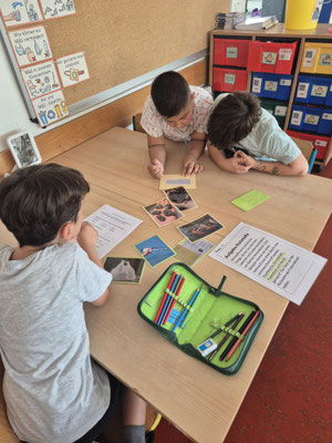 Die verschiedenen Klassen haben sich anhand der Bücher mit Kinderrechten, Rassismus, Kulturen und Gewohnheiten weltweit sowie eigenen Erfahrungen mit Rassismus auseinandergesetzt. Unsere Schülerinnen und Schüler haben hierfür verschiedene Arbeitsblätter, Memories, Stabpuppen und Plakate genutzt und gestaltet.